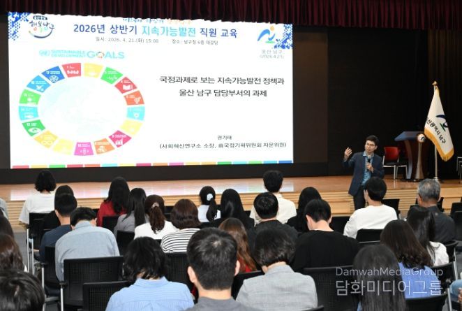시민행정신문 강갑수 기자 | 울산 남구는 21일 구청 6층 대강당에서 직원 130여 명을 대상으로 지속가능발전 이해와 공감대 확산을 위한 ‘2026년 상반기 지속가능발전 직원 교육’을 실시했다.