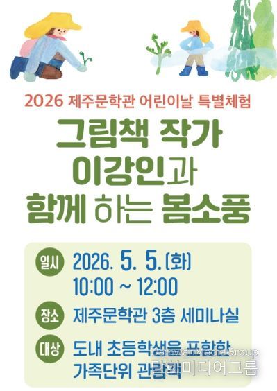 시민행정신문 기자 | 제주특별자치도 제주문학관은 오는 5월 5일 어린이날을 맞아 가족 단위 관람객을 위한 특별 체험 프로그램 ‘이강인 작가와 함께하는 봄소풍’을 운영한다.