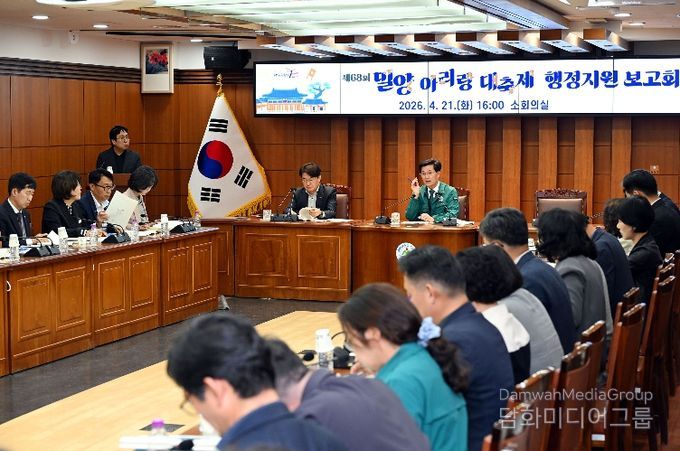 시민행정신문 강갑수 기자 | 경남 밀양시는 21일 시청 소회의실에서 오는 5월 7일부터 10일까지 나흘간 열리는 제68회 밀양아리랑대축제의 성공적인 개최를 위한 행정지원 보고회를 가졌다.
