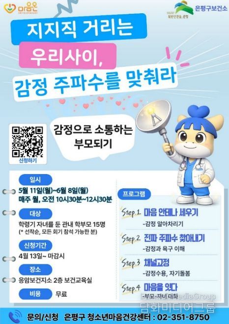 김미경 은평구청장은 “이번 집단상담이 부모와 자녀가 서로의 감정을 이해하고 관계를 회복하는 계기가 되길 바란다”며 “앞으로도 청소년 가족의 마음 건강을 위한 지원을 지속적으로 확대해 나가겠다”고 말했다.