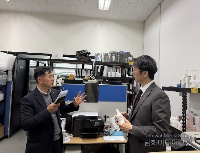 이원구 수원시 경제정책국장을 비롯한 현장 지원단은 두피 보호기능 화장품을 생산하는 ㈜크로마흐(델타플렉스 벤쳐밸리2)를 찾아 이동환 대표를 비롯한 임직원들과 이야기를 나눴다.