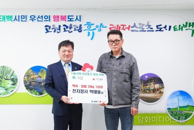 시민행정신문 강갑수 기자 | 태백산 천지정사는 지난 21일 관내 저소득 가구 및 소외계층을 위해 백미·찹쌀 20kg 150포를 태백시에 전달했다.