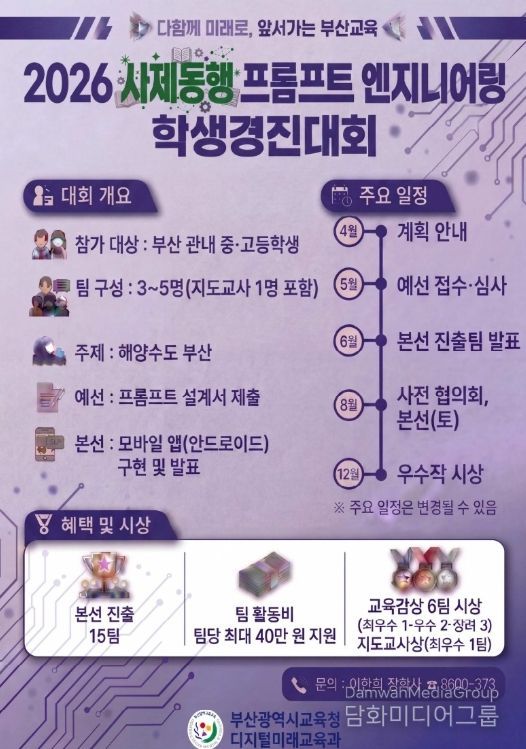 시민행정신문 기자 | 부산광역시교육청은 관내 중·고등학생과 교사가 한 팀으로 참여하는 ‘사제동행 2026 프롬프트 엔지니어링 학생경진대회’를 개최한다고 밝혔다.