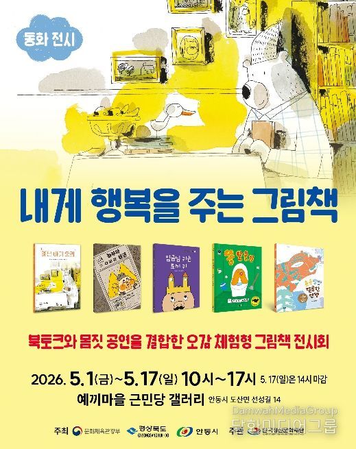 시민행정신문 기자 | 안동시와 (재)한국정신문화재단은 가정의 달 5월을 맞아 5월 1일부터 17일까지 안동 선성현문화단지 근민당 갤러리에서 ‘내게 행복을 주는 그림책’ 행사를 개최한다고 밝혔다.
