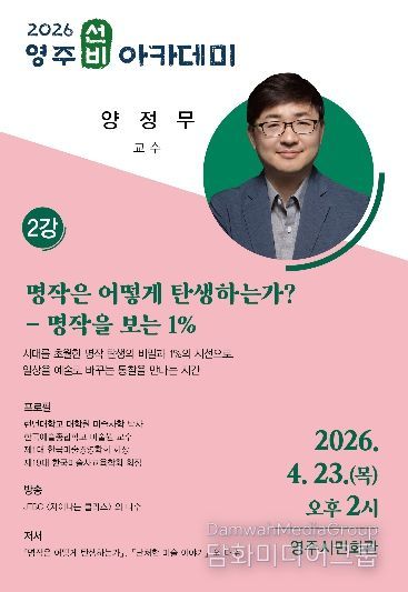 김호정 선비인재양성과장은 “명작 속에 담긴 이야기를 통해 시민들의 일상이 더욱 풍요로워지는 시간이 되길 바란다”며 “앞으로도 수준 높은 인문학 강연을 지속적으로 마련해 나가겠다”고 밝혔다.