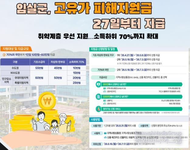 시민행정신문 강갑수 기자 | 임실군이 최근 중동지역 긴장 고조에 따른 고유가‧고물가 상황 속에서 군민들의 생활안정을 지원하기 위해 ‘고유가 피해지원금’을 지급한다.