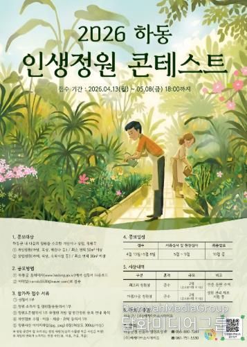 군 관계자는 “인생정원 콘테스트가 하동의 숨은 정원을 발굴하고, 나아가 지역의 정원 문화를 풍성하게 하는 계기가 되길 기대한다”라며, “많은 분의 참여를 부탁드린다”라고 독려했다.