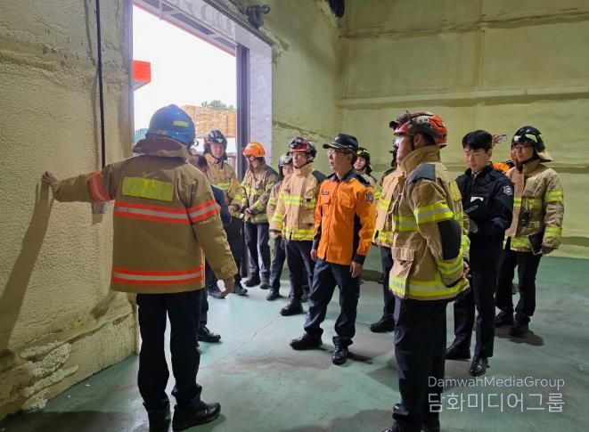 현장지휘관 및 진압활동대원들과 함께 현장을 찾아 ▲사업장 내 소방시설 및 피난·방화시설 유지관리 상태 점검 ▲냉동·전기설비 주변 화재취약요인 확인 ▲우레탄폼 등 가연성 소재 인근 화기 취급 주의 당부 ▲유증기 체류 방지를 위한 환기설비 작동 여부 등을 집중 확인했고 현장활동대원들의 현장적응훈련을 진행했다.