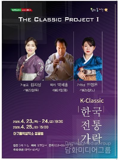 시민행정신문 기자 | 대구 남구 대덕문화전당이 순수예술 활성화를 위해 지난해 신설한 ‘The Classic Project’의 2026년 상반기 시리즈가 세계적으로 각광받고 있는 국악의 매력을 소개하는 무대들로 오는 4월 23일부터 4월 25일까지 사흘간 대구음악창작소 창공홀에서 펼쳐진다.