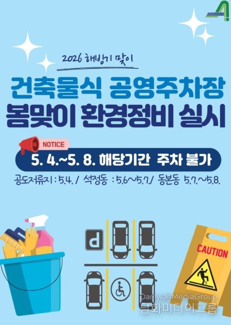세부 정비 일정은 ▲공도저류지 공영주차장(5월 4일) ▲석정동 공영주차장(5월 6일~7일) ▲동본동 공영주차장(5월 7일~8일) 순으로 진행된다. 공단은 청소 및 시설 보수 시간 중 발생할 수 있는 안전사고를 예방하기 위해 해당 기간 주차장 이용을 일시적으로 제한한다.