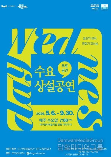 시민행정신문 강갑수 기자 | 대구문화예술회관은 오는 5월 6일부터 9월 30일까지 매주 수요일 오후 7시, 대구문화예술회관 동편 야외무대에서 문화가 있는 날 ’수요상설공연‘을 선보인다.