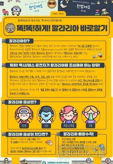 시민행정신문 기자 | 고양특례시 일산동구보건소는 말라리아 매개모기가 본격적으로 활동하는 시기를 대비해 택시와 버스 등 운전 종사자들을 대상으로 “똑!똑!하!게! 말라리아 바로알기”를 오는 5월부터 홍보할 예정이라고 밝혔다.