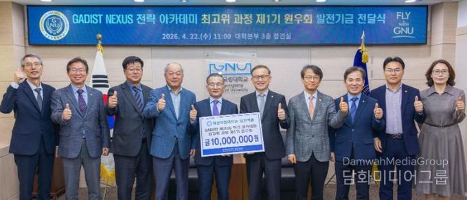 시민행정신문 강갑수 기자 | 경상국립대학교는 4월 22일 오전 11시 대학본부 3층 접견실에서 ‘GADIST NEXUS 전략 아카데미 최고위 과정’ 제1기 원우회의 대학발전기금 전달식을 개최했다.