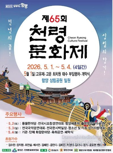 시민행정신문 기자 | 함양군을 대표하는 종합문화축제 ‘제65회 천령문화제’가 오는 5월 1일부터 4일까지 4일간 천년의 숲 상림공원 일원에서 열린다.