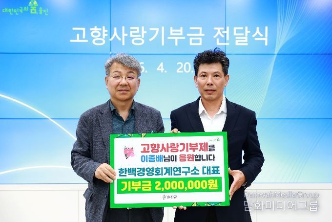 시민행정신문 강갑수 기자 | 한백경영회계연구소 이종배 대표가 지난 4월 20일 울진군에 고향사랑기부금 200만 원을 전달했다.