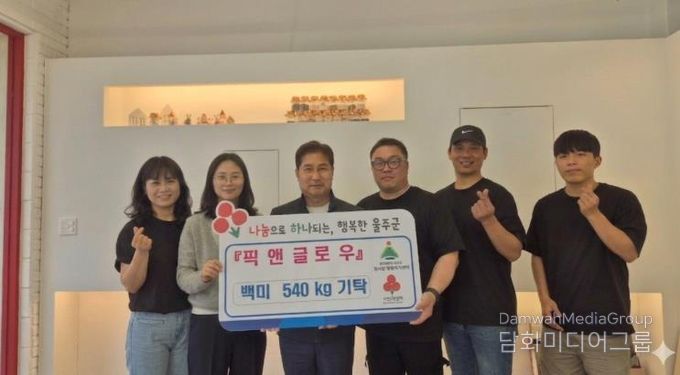 시민행정신문 강갑수 기자 | 울주군 범서읍 구영리에 위치한 ‘픽앤글로우’가 22일 범서읍 행정복지센터에 지역 내 어려운 이웃을 위한 백미 540㎏을 전달했다.