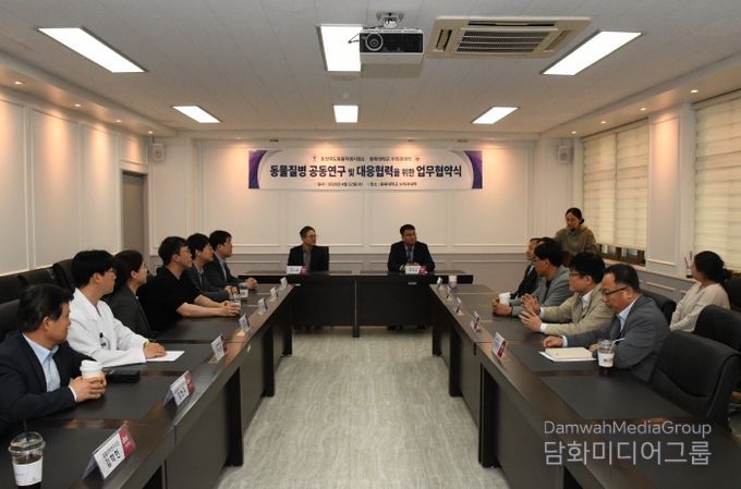 시민행정신문 강갑수 기자 | 충청북도동물위생시험소와 충북대학교 수의과대학은 22일 충북대학교에서 동물질병 공동연구 및 대응을 위한 업무협약(MOU)을 체결하고 가축전염병 대응 능력을 고도화하겠다고 밝혔다.