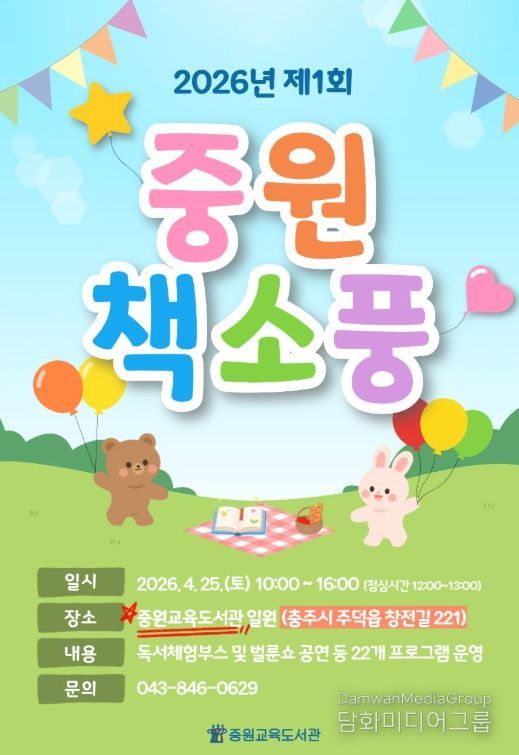 시민행정신문 기자 | 충청북도교육청 직속기관 중원교육문화원은 25일, 충주시 주덕읍에 위치한 중원교육도서관 일원에서 2026년 제1회 '중원책소풍'을 개최한다.