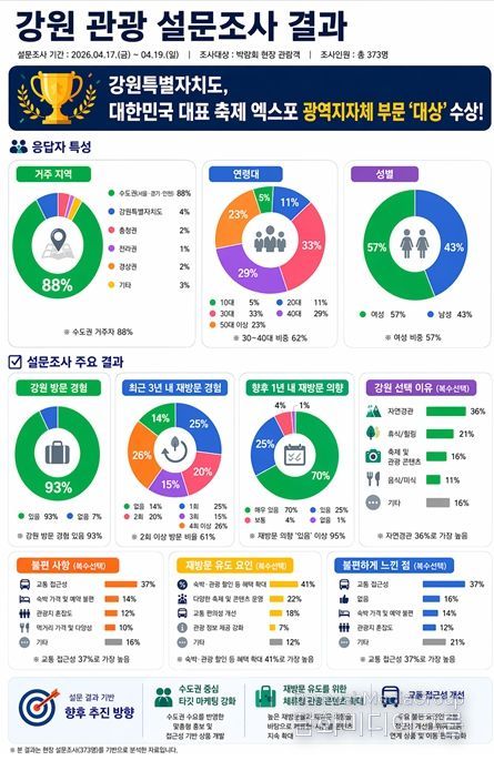 또한 관람객 대상 설문조사(총 373명)를 통해 강원 관광에 대한 인식 및 수요 특성을 분석했다.