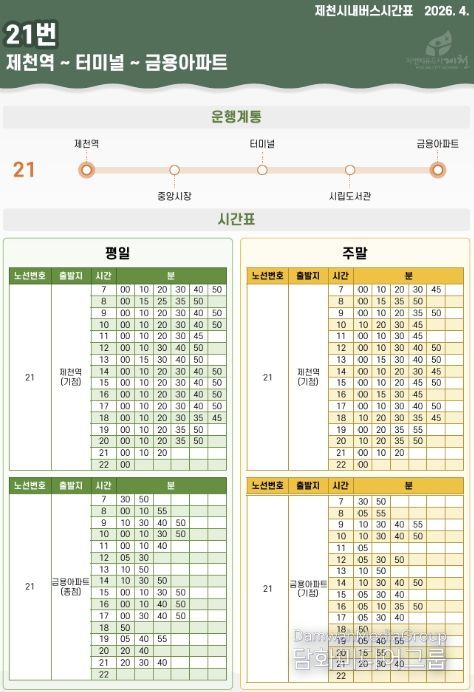 바뀐 시간표는 제천시청 누리집에서 내려받아 활용할 수 있다. 정류장 부착용 시간표 교체는 예산 확보와 인쇄 및 설치 일정 조율을 거쳐 이용객이 많은 주요 거점 정류장부터 순차적으로 진행할 예정이다.