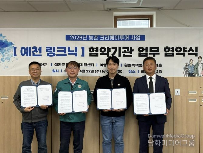 시민행정신문 강갑수 기자 | 예천군은 지난 22일 오후 4시, ‘농촌 크리에이투어’ 사업의 체계적인 추진과 민·관 협력 강화를 위한 민간 협의체를 구성하고 업무 협약을 체결했다고 밝혔다.