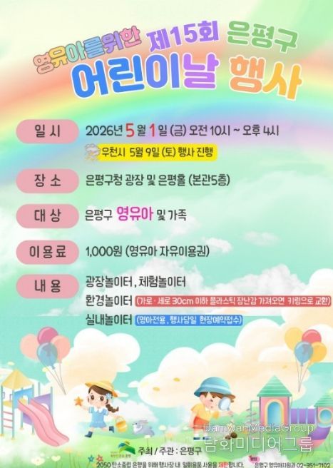 시민행정신문 이존영 기자 | 서울 은평구는 어린이날을 맞아 내달 1일 은평구청 광장과 은평홀에서 ‘제15회 영유아를 위한 어린이날 행사’를 개최한다고 밝혔다.