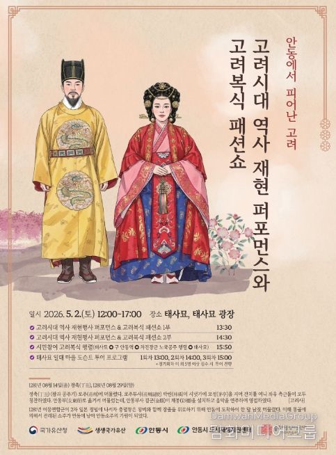 시민행정신문 기자 | 안동시 도시재생지원센터는 오는 5월 2일 12시부터 태사묘와 태사광장 일대에서 ‘2026년 생생 국가유산 사업’의 일환으로 진행되는 '안동에서 피어난 고려' 행사를 개최한다고 밝혔다.
