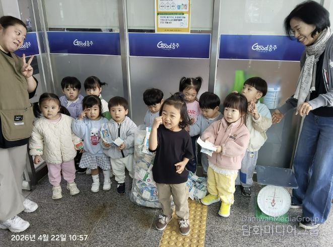 이번 방문은 충주시가 시행 중인 ‘재활용 가능 자원 보상 교환 사업’에 동참하기 위해 마련됐으며, 어린이집 원생 11명은 그동안 정성껏 모은 우유 팩 5.6kg을 지참해 센터를 찾았다.