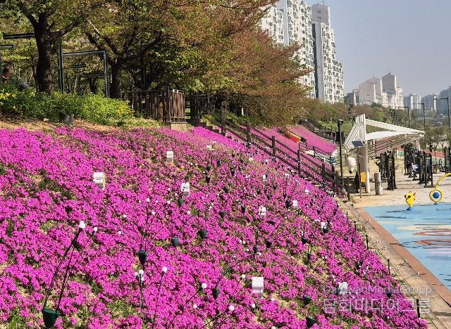 4월 중순부터 피기 시작한 꽃잔디는 4월 말에 만개할 예정이며, 5월까지 진분홍 경관을 연출할 예정이다.