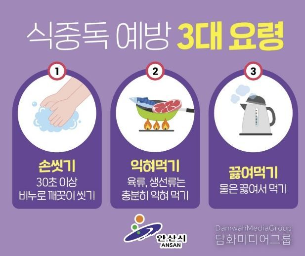 이민근 안산시장은 “식중독은 기본적인 위생수칙 준수만으로도 충분히 예방할 수 있다”며 “손 씻기, 익혀 먹기, 끓여 먹기 등 개인위생 수칙을 생활화해 주시길 바란다”고 말했다.