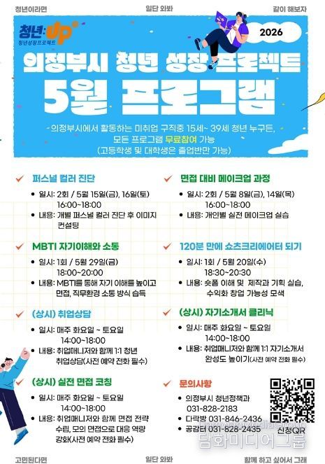 시민행정신문 강갑수 기자 | 의정부시는 미취업 청년의 취업 준비 역량 강화를 위해 ‘청년성장프로젝트’ 5월 프로그램을 운영한다.