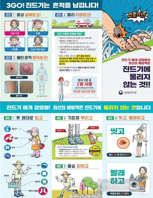 울산시 관계자는 "야외활동 후 2주 이내 발열·근육통 등 증상이 나타나면 즉시 의료기관을 찾아 진료받고, 진료 시 야외활동 이력을 의료진에게 알려 줄 것을 당부드린다"라고 말했다.