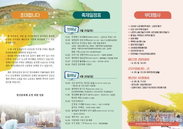 시민행정신문 기자 | 제주시는 ‘제23회 방선문 축제’가 4월 25일부터 26일까지 오라동 방선문 일대에서 개최된다고 밝혔다.