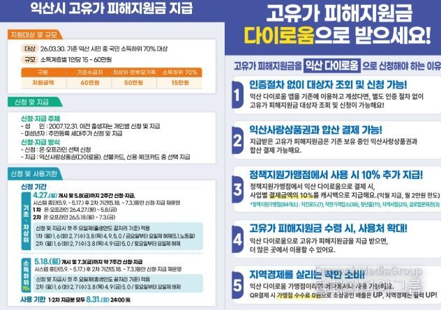 정헌율 익산시장은 "고유가 피해지원금은 중동전쟁발 고유가, 고환율, 고물가로 인한 시민 부담을 덜고 취약계층을 보다 두텁게 지원하기 위한 정책"이라며 "시민 여러분께서는 익산 다이로움으로 피해지원금을 수령해 더 많은 혜택을 누리시길 바란다"고 말했다.