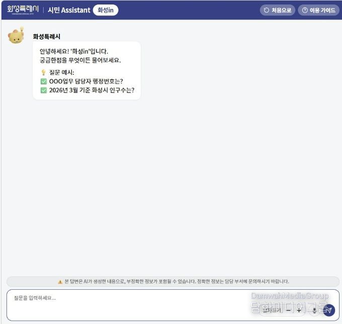 선병곤 정보통신과장은 “‘화성in’은 시민들이 시정 정보를 보다 편리하게 접하고, 필요한 민원 정보를 신속하게 얻을 수 있도록 돕는 통합 행정 창구 역할을 할 것”이라며 “생성형 AI를 활용한 행정서비스를 지속적으로 확장해 시민 체감도를 높여 나가겠다”고 말했다.