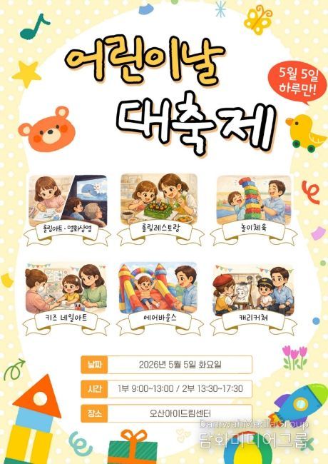 시민행정신문 기자 | 오산시가 운영하는 오산아이드림센터가 어린이날을 맞아 온 가족이 함께 즐길 수 있는 특별 체험행사를 마련한다.