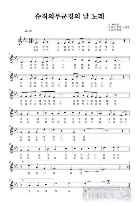 끝으로, 제1회 정부 기념행사를 개최하며 제작한 기념곡 ‘순직의무군경의 날 노래’를 가수 라포엠과 대학생연합합창단의 선도로 참석자 모두가 제창하며 기념식이 마무리된다.