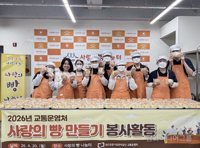 시민행정신문 강갑수 기자 | 대구공공시설관리공단 교통운영처는 지난 4월 20일 지역 내 소외된 독거노인을 위한 ‘사랑의 빵 만들기’를 실시하여 샬롬재가노인돌봄센터에 기부하며 이웃사랑을 실천했다.