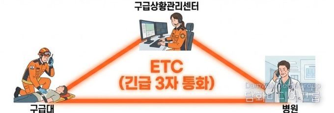 ETC는 구급대와 구급상황관리센터, 의료기관을 동시에 연결하는 긴급 3자 통화 방식으로, 중증응급환자 발생 시 현장에서 환자 상태를 실시간으로 공유하고 의료기관의 수용 가능 여부를 즉시 확인할 수 있도록 구축한 현장 중심 대응체계다.