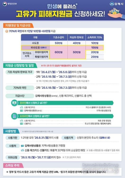 문의는 김해시 민원콜센터와 읍면동 행정복지센터로 하면 된다.