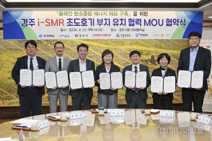 시민행정신문 강갑수 기자 | 경상북도는 4월 23일 경주시청 대외협력실에서 포항시, 경주시 및 지역 4개 대학(POSTECH, 한동대, 동국대 WISE 캠퍼스, 위덕대)과 업무협약을 맺고,‘경주 i-SMR 초도호기 부지유치’를 위해 7개 기관이 ‘원팀’으로 협력하기로 뜻을 모았다.