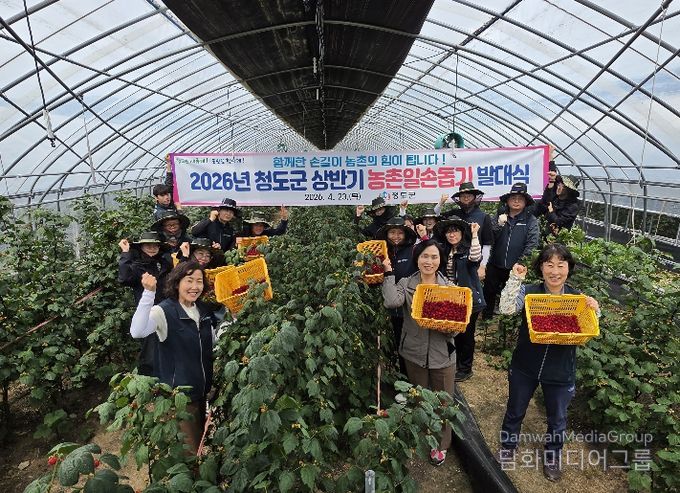 시민행정신문 강갑수 기자 | 청도군은 농촌인구 감소와 고령화로 일손 부족을 겪고 있는 농가를 지원하기 위해 4월 23일 운문면 방지리 산딸기 농장에서 발대식을 개최하고, 농가의 산딸기 전정 및 수확 작업을 도우며 2026년 상반기 농촌일손돕기의 힘찬 시작을 알렸다.