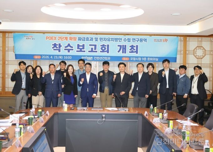 시는 23일 시청 중회의실에서 ‘POEX 2단계 확장 파급효과 및 민자유치방안 수립 연구용역’ 착수보고회를 개최했다고 밝혔다. 이날 보고회에서는 수행기관으로 선정된 동덕여자대학교 산학협력단이 용역 추진 방향과 주요 과업을 발표했다.