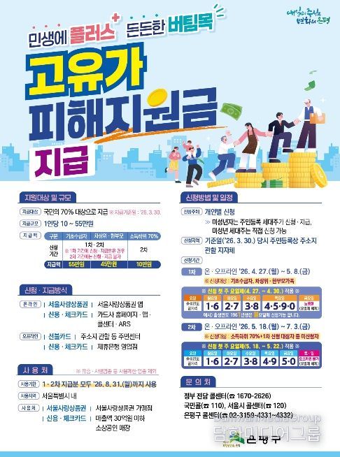 은평구는 신청 과정에서의 불편을 줄이기 위한 현장 대응 체계도 함께 가동한다. 고령자 및 장애인 등 거동이 불편한 주민을 위해 동 주민센터에서 직접 방문해 신청을 돕는 ‘찾아가는 신청 서비스’를 운영한다. 신청 방법과 지급 기준, 사용처 안내 등을 위한 전담 콜센터도 운영할 계획이다.