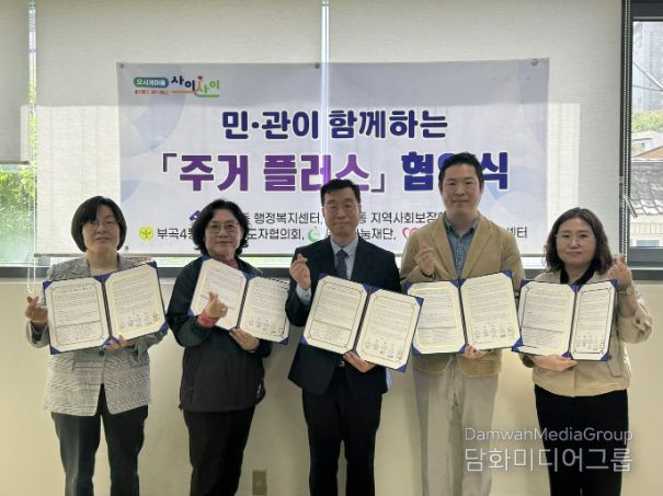시민행정신문 강갑수 기자 | 부산 금정구 부곡4동은 지난 4월 21일 세정나눔재단, 금정구 자원봉사센터, 부곡4동 지역사회보장협의체, 부곡4동 새마을지도자협의회와 함께 『민관협력 주거 플러스』 사업 추진을 위한 업무협약을 체결했다.