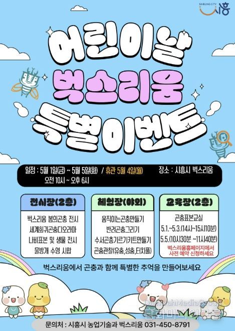 시민행정신문 강갑수 기자 | 시흥시 곤충체험전시관 ‘벅스리움’은 어린이날을 맞아 아동과 가족이 함께 즐길 수 있는 ‘특별 프로그램’을 오는 5월 1일부터 5일까지 운영한다.