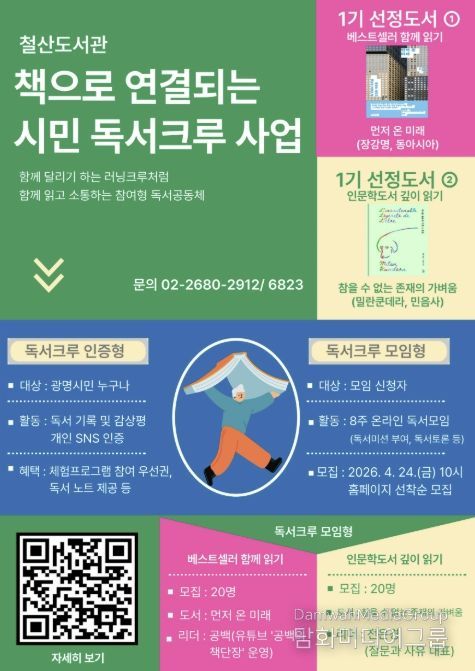 철산도서관은 오는 5월부터 ‘책으로 연결되는 시민 독서크루’ 사업을 본격 운영한다고 24일 밝혔다.