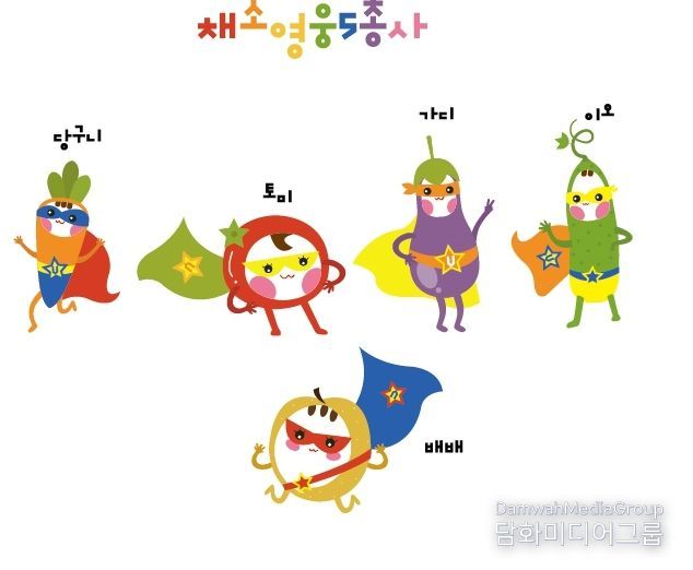 교육은 영양교육체험센터의 채소·과일 캐릭터인 슈퍼 히어로 채소과일 5총사 ▲토미(토마토) ▲가디(가지) ▲이오(오이) ▲당구니(당근) ▲배배(배) 가 인형을 변해 함께한다.