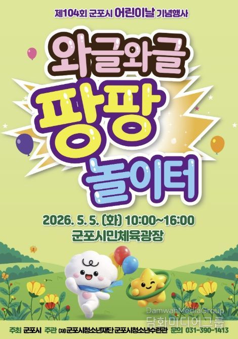 시민행정신문 기자 | 군포시는 제104회 어린이날을 맞아 오는 5월 5일 오전 10시부터 오후 4시까지 군포시민체육광장에서 ‘와글와글 팡팡 놀이터’를 주제로 어린이날 기념행사를 개최한다.