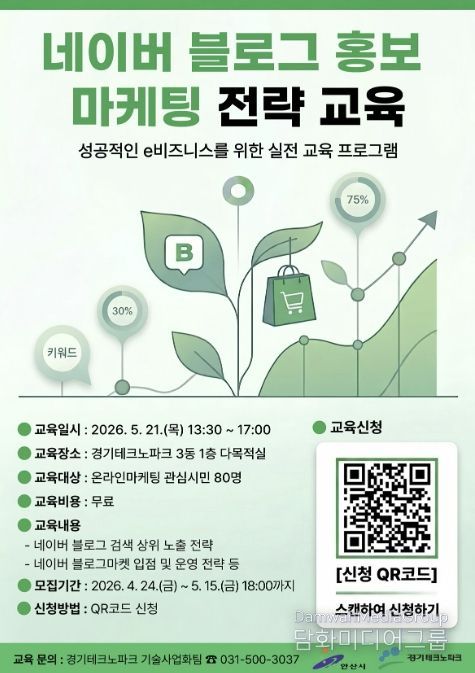 이번 교육은 5월 21일 오후 1시 30분부터 5시까지 경기테크노파크 3동 1층 다목적실(상록구 해안로 705)에서 진행된다.